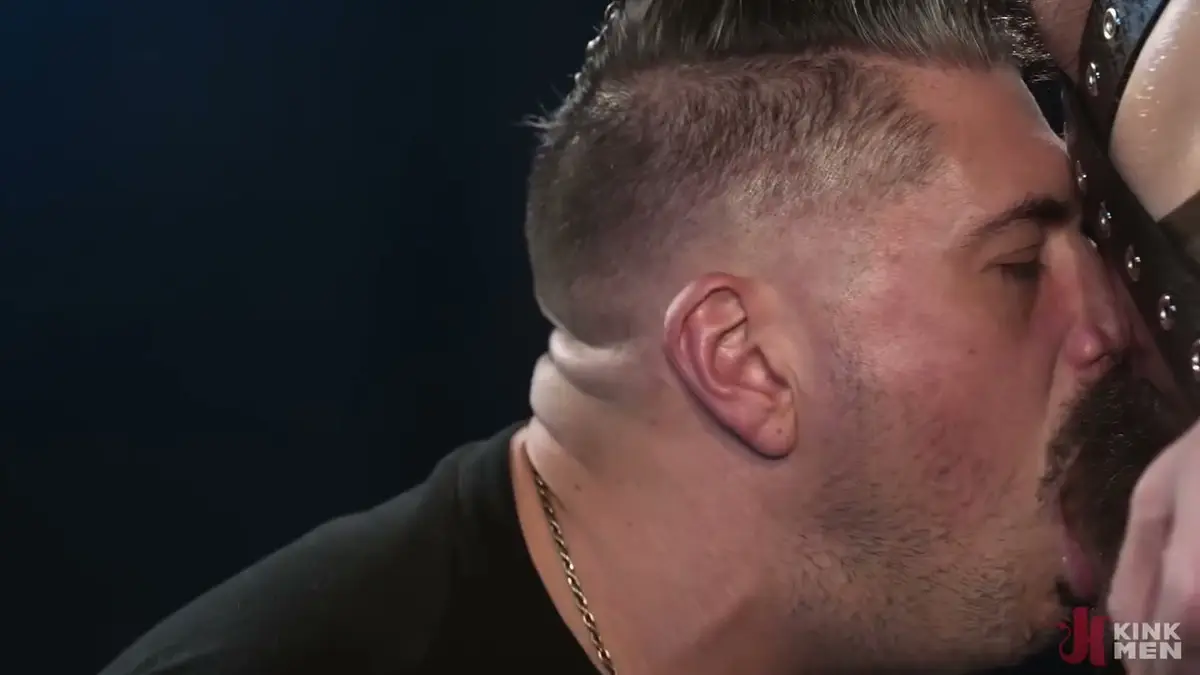 Mercilessly masterful, WoodxBound dominates Eddie Patrick in this intense BDSM edging session that will leave you breathless. The hung sub is spun into a web of allowance, his body stripped down to skin-tight, crotchless latex shorts that tease more than they cover. With a blindfold of wet tape sealing his eyes and a system of black straps pinning him to the wall, Eddie writhes, caught between pleasure and pure agony. This dominant doesn’t allow the handsome sub to see or speak clearly; he just feels WoodxBound’s cruel hands roam over his tight nipples, sending shockwaves through Eddie’s trapped body.