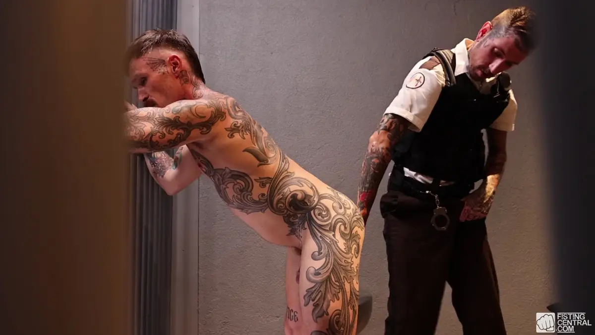 The script? It’s a real gem because it combines fisting and a police officer in uniform. Prison gay fisting porn action, in short. Ryan Sebastian is very cool as a police officer, and let’s be honest, we would really like him to search us, just like he searches the cavities of Matt Coven, who plays a prisoner. In the past, Fisting Central has implemented a similar scenario. Maybe some remember Submission Prison with Drew Sebastian?!