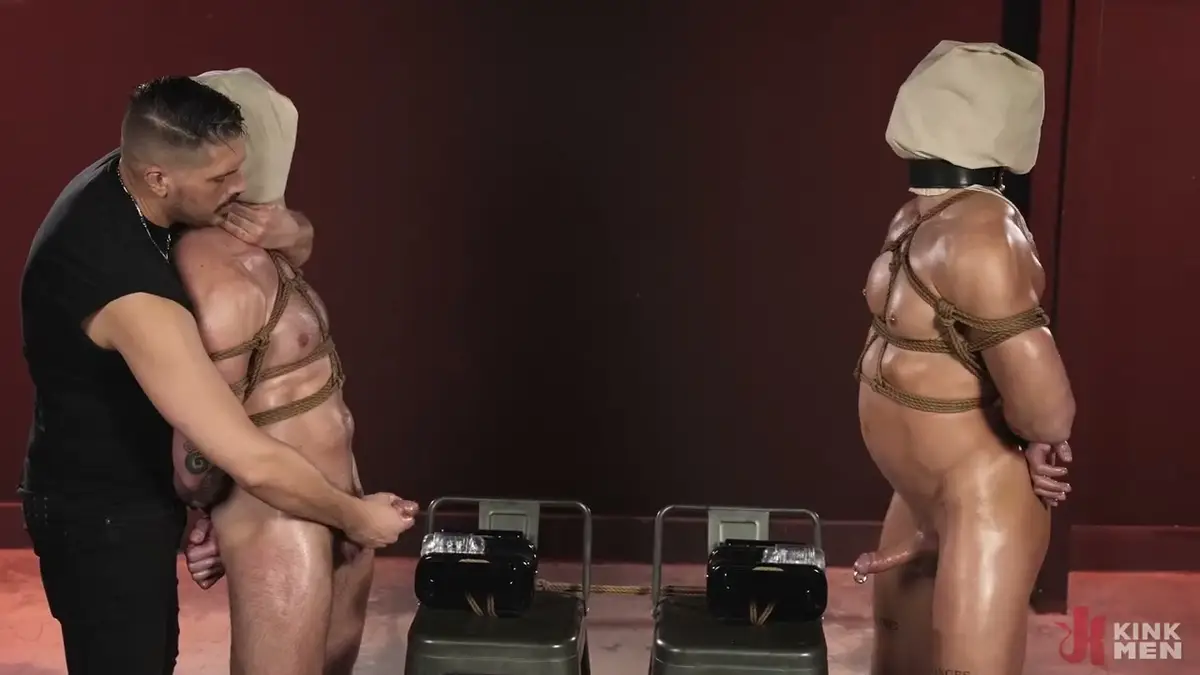 The very first scene in this breathtaking video immediately establishes the tone of what’s to come. The imagery of Phoenix Leo and Rew Lobo, both with bags over their heads and riding those huge dildos under WoodxBound’s watchful eye, is nothing short of magnificent. There’s something incredibly primal and powerful about watching these bound men being forced into such a provocative position, completely dependent on their mysterious captor for every ounce of sensation and release. The juxtaposition of their helplessness with the massive dildos they’re riding creates a powerful visual that remains etched in your mind long after watching this exquisite torture unfold.