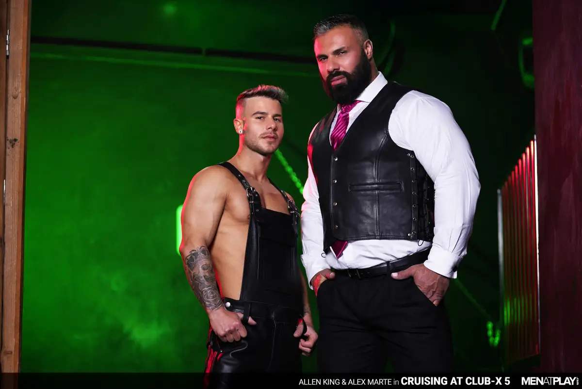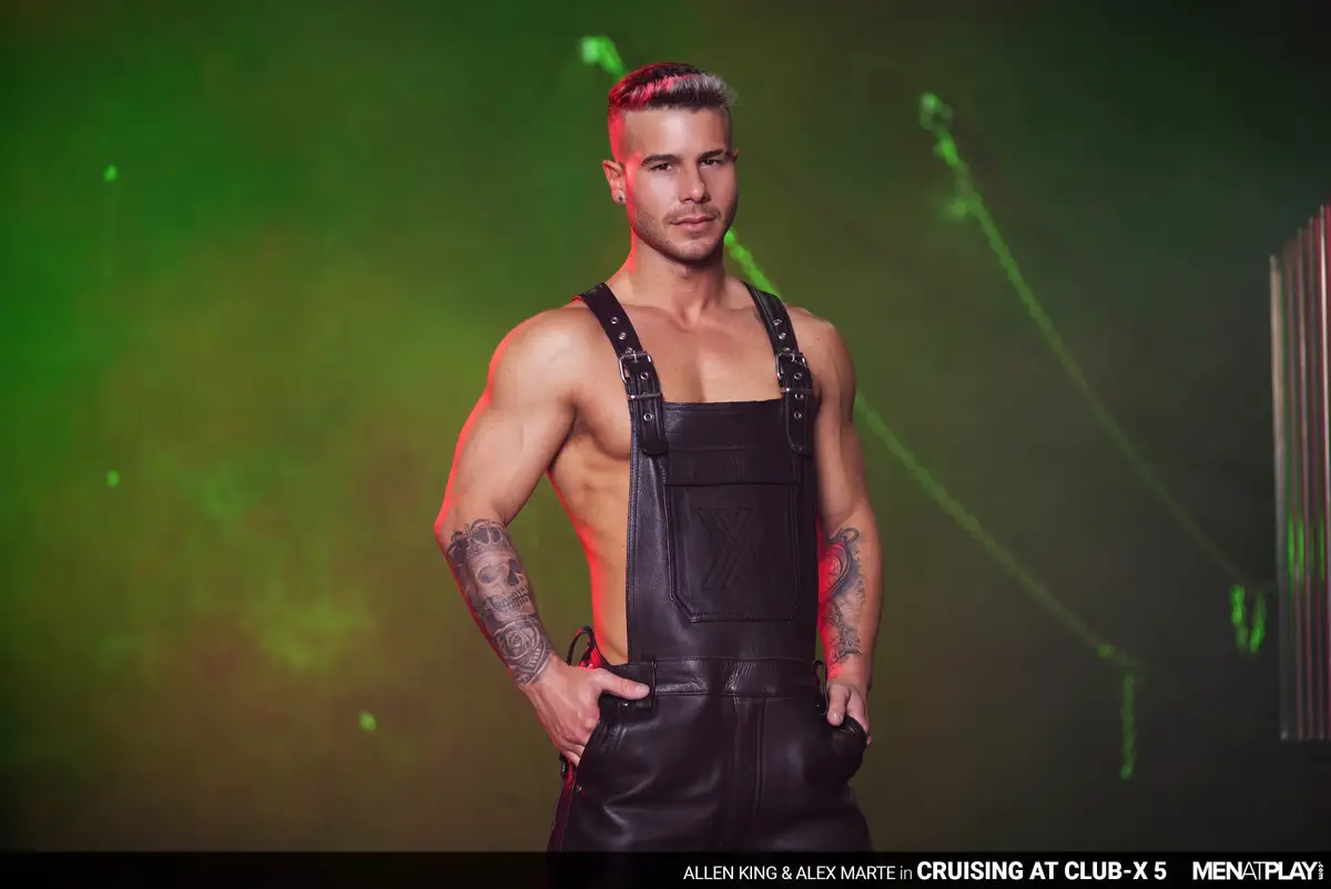 Alex Marte and Allen King bring the hottest gay leather fetish scene to the leather club, where skin against skin becomes an art form as these two devastatingly handsome men give the world exactly what it’s come to crave – raw pleasure wrapped in tight-fitting leather outfits that not only tease the senses but promise the ultimate sexual liberation. From the first touch of Allen’s leather union suit against Alex’s leather vest, through the intense sling session where every inch of skin and leather slides together, these studs replace conviction and commitment, delivering a performance of mutual satisfaction that any gay leather fetish fan would happily burn for.